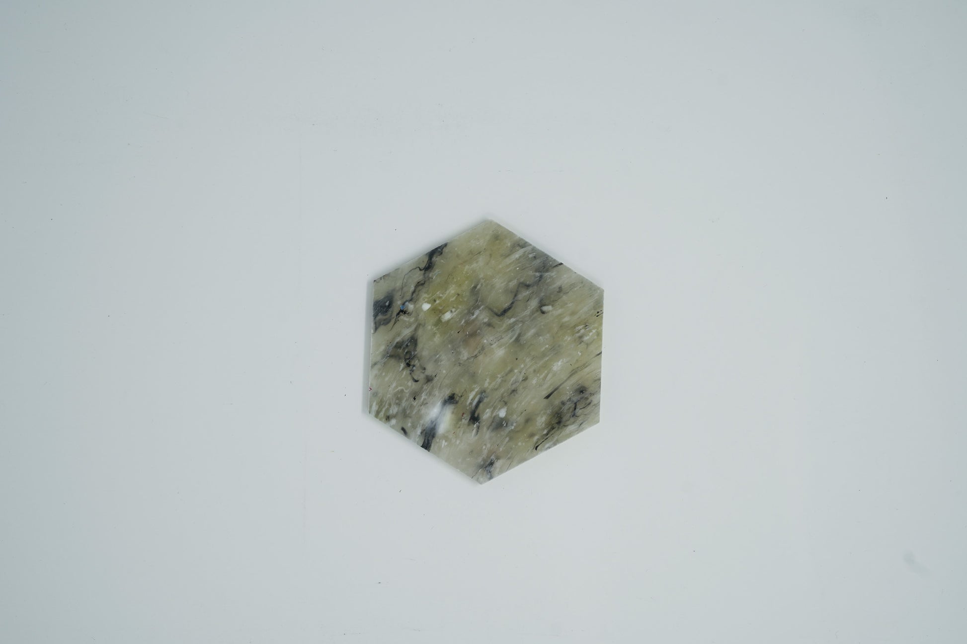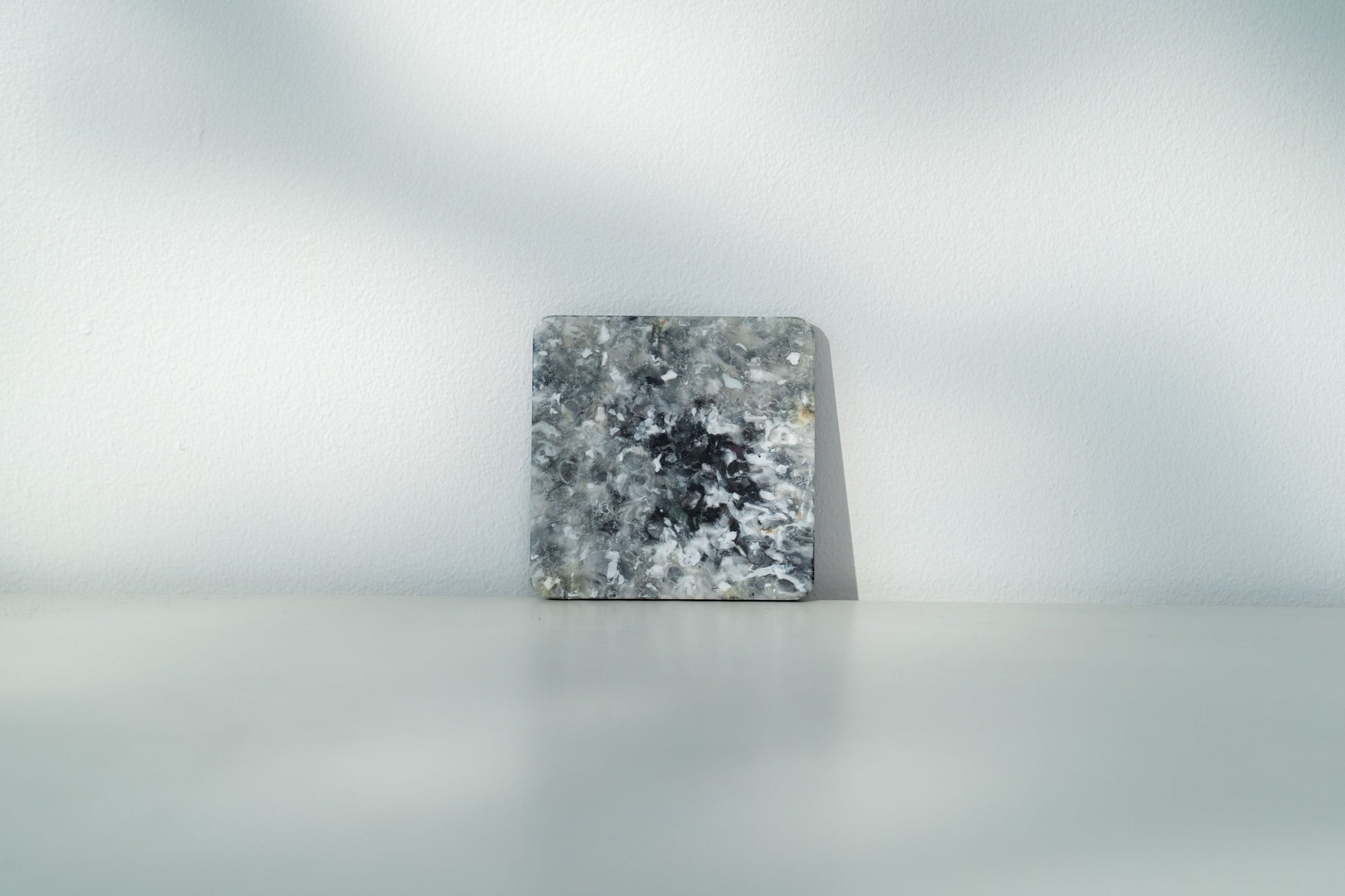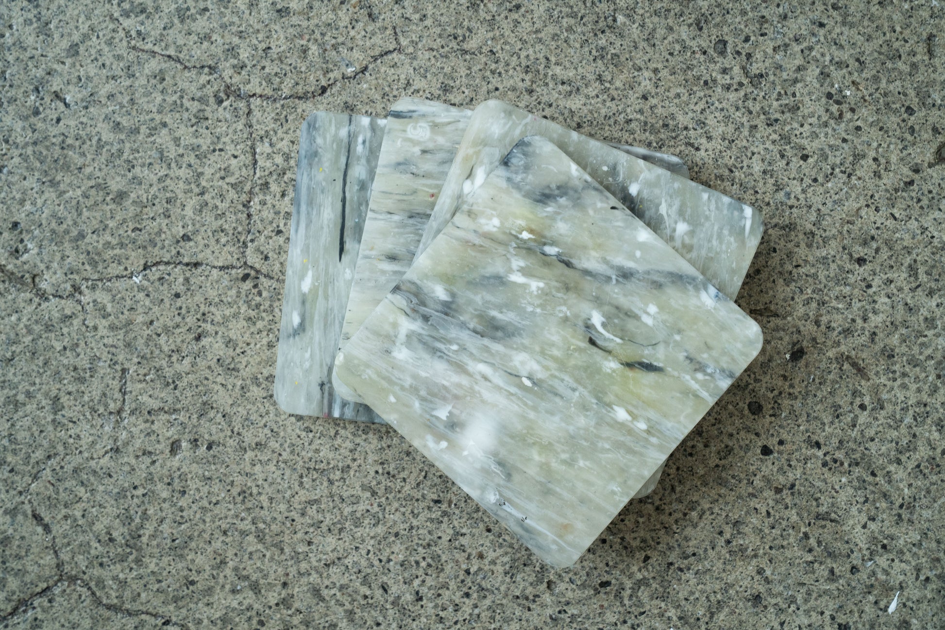 Crafted from post-consumer plastic, these durable coasters are as functional as they are sustainable. Each piece is handmade with care, showcasing a unique pattern that highlights the beauty of reclaimed materials.