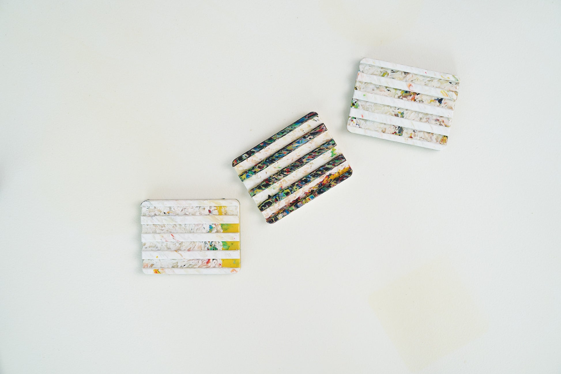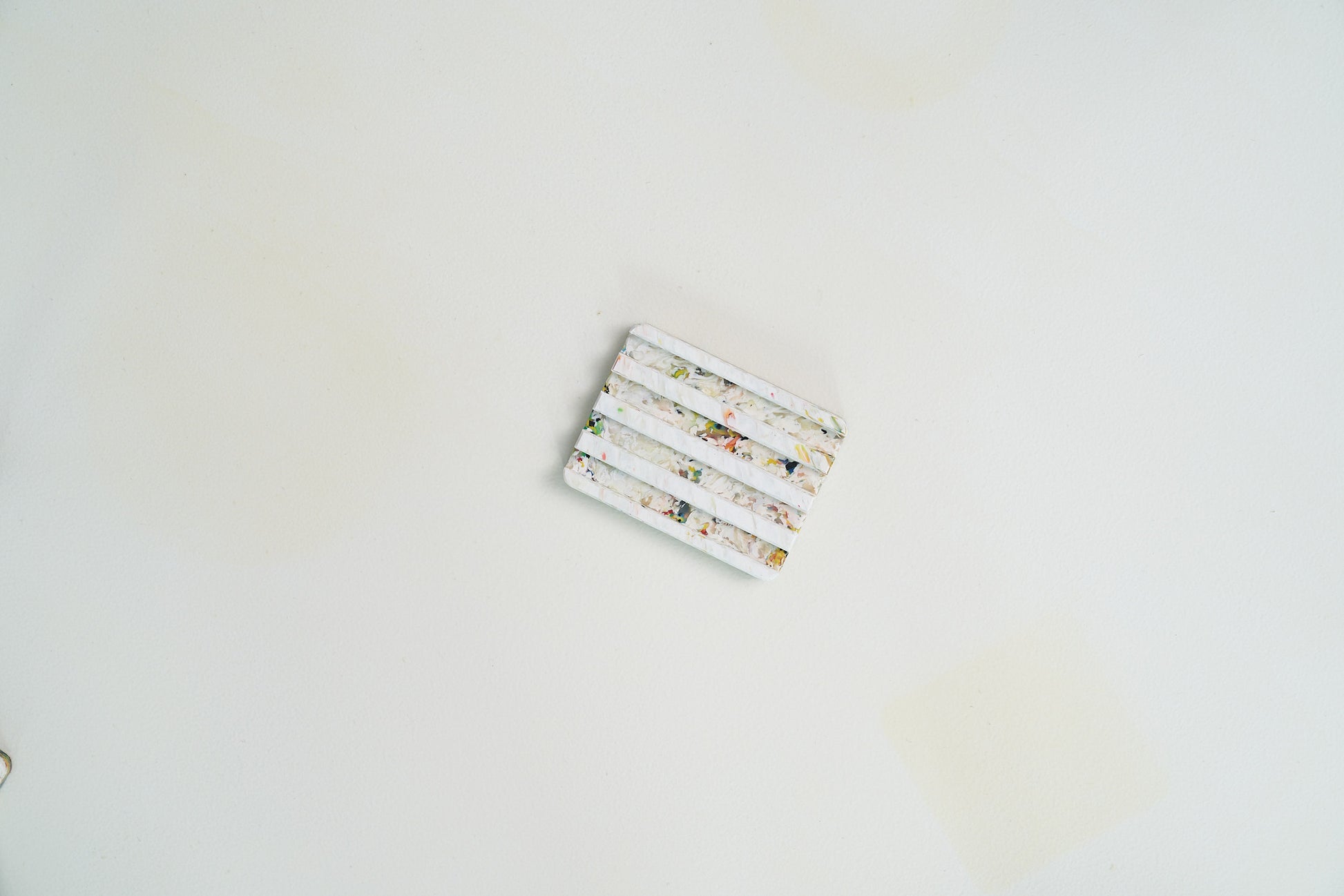Crafted from 100% post-consumer recycled plastic, this soap dish blends sustainability with style. The slotted design allows water to drain easily, helping your soap last longer and your counter stay tidy. Each piece is uniquely marbled using our custom sheet press process—no two are ever the same.